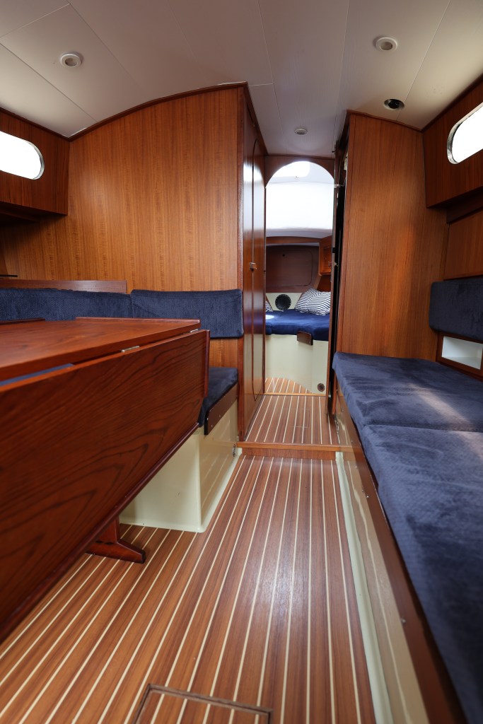 Snapdragon 890, gebaut 1971 von der englichen Werft Thames Marine, Canvey Island in der Grafschaft Essex. L 8,90m, B 2,90m, T 1,10 m; Kimmkieler, Rollfock, Großsegel mit klassischem 2-fach Bindereff, Pinnensteuerung, Volvo Penta MD-2003. Komplettes Refit 2022